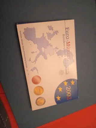 Estuche conmemorativo de monedas Euro de la República Federal de Alemania del año 2002. - Incluye monedas de diferentes céntimos. - Presentado en estuche protector. - Sello de la Casa de la Moneda de Karlsruhe (-G-).