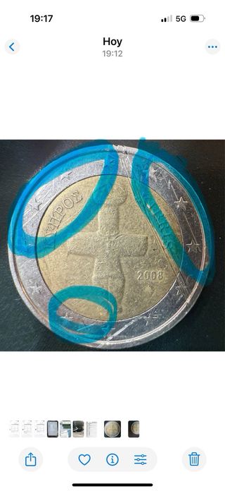 Moneda de 2 euros conmemorativa de Chipre. Extrañas ralladuras inexplicables de impresion de origen, esta marcada por debajo del nivel de montaje.. No hacer ofertas absurdas. Extremadamente rara - Año de emisión: 2008. - Diseño: Ídolo de cruciforme de Chirokitia.