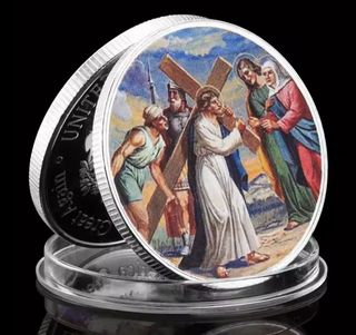 Moneda conmemorativa bañada en plata, de 40 mm de diámetro y con una escena religiosa grabada de Jesús cargando la cruz. - Diseño detallado de la Pasión de Cristo. - Borde plateado con inscripciones. •MONEDA + CÁPSULA PROTECTORA. recuerdo cuadro pared iglesia católica virgen maría Jesucristo Jesús dios ortodoxa iglesia religión biblia semana santa creyente procesión santo busto imagen virgenbde Fátima Guadalupe san José del Rocío santiago catedral Belén evangelio caliz tarot gratis envío gratuito oferta descuento ropa moda hombre mujer prenda coche outlet liquidación rebajas regalo artesanía antigüedad detalle para regalar