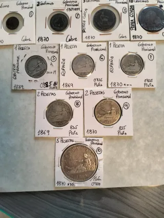 Bonito Lote de 10 monedas del Gobierno Provisional. 6 de plata y 4 cobres