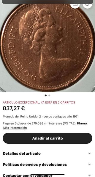 Moneda Reino Unido 2 peniques año 1971 muy buscada ,negociable