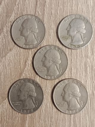 5 monedas de cuarto de dolar 1 - 1967 1 - 1973 2 - 1978 1 - 1981 Escucho ofertas!