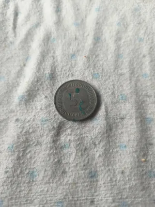 Moneda alemana con el número 5. - Diseño circular. - Grabado en relieve.
