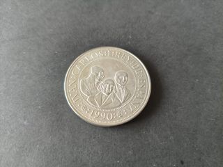 Moneda de 5 pesetas del año 1990. - Diseño conmemorativo. - Material: Acero bañado en cobre.