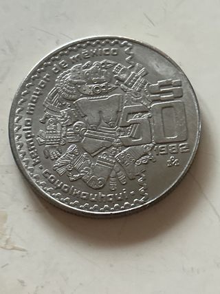 Moneda conmemorativa de México del año 1982. - Diseño de la Piedra del Sol Azteca. - Valor nominal de 50 pesos.
