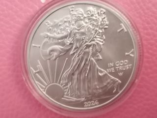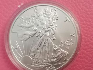Moneda de la Libertad conmemorativa del año 2024. De metal Plateado con su capsula de proteccion. Diseño detallado de la Libertad caminando. - Inscripción IN GOD WE TRUST. - Grabado del año 2024. Mas cosas en mi perfil que puede interesar y agrupar.