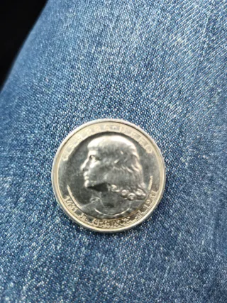 Moneda conmemorativa de Estados Unidos. - Diseño de mujer con cabello largo. - Borde con detalles. - Acabado metálico.
