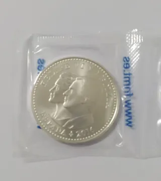 Moneda de plata del año 2014. Coronación de Felipe VI. Fecha de emisión año 2014. Anverso: Felipe VI. Reverso: Escudo del Rey Felipe VI. Tirada: 1000000 de unidades