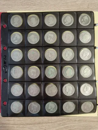 Lote de 30 monedas de 1 peseta de entre 1883 y 1903. En general están algo desgastadas y con pátina verde. Cualquier duda preguntar sin compromiso. En total hay aprox. 125,25g de plata: - 1 peseta 1883 (2) - 1 peseta 1891 (3) - 1 peseta 1893 (1) - 1 peseta 1894 (1) - 1 peseta 1896 (2) - 1 peseta 1899 (3) - 1 peseta 1900 (12) - 1 peseta 1901 (1) - 1 peseta 1902 (2) - 1 peseta 1903 (3) 📌 Precio no negociable. 📌 Solo envío por wallapop. Más monedas en mi perfil.