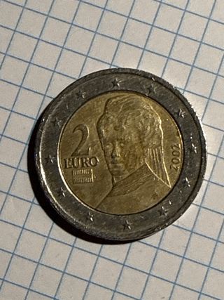 Moneda de 2 euros de Austria conmemorativa del año 2002. - Diseño conmemorativo. - Borde con estrellas y leyendas.