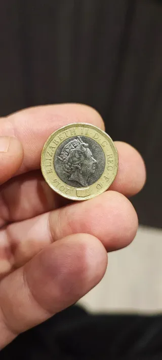 Moneda de una libra británica. - Diseño con el retrato de la Reina Isabel II. - Año de acuñación: 2016.