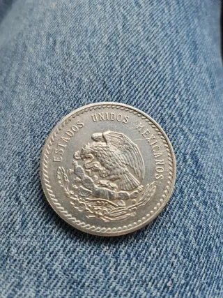 Moneda conmemorativa de 5 pesos mexicanos de 1951. Plata 0.720 Moneda circulada, en el estado en que se ve en las fotos.
