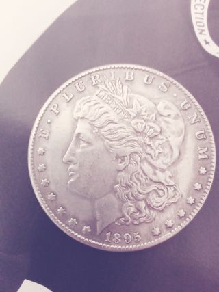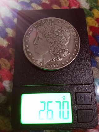 Moneda de plata Morgan Dollar con fecha de 1895. - Diseño de Lady Liberty. - Grabado E PLURIBUS UNUM y UNITED STATES OF AMERICA, CECA, Orlando. - Peso: 26.70 gramos. -Esta es la moneda mas valiosa de mi coleccion, la vendo porque necesito el dinero a un precio mas barato.