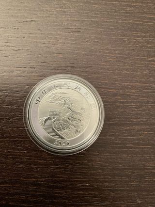 1 oz Plata Dragón China 2026 Moneda de plata de 1 onza dragón chino. Nueva. Entrega en persona en Granada o envío certificado por correos. - Peso: 1 oz - Metal: Plata - Pureza: Ag.999 - Valor nominal: 10 Yuan