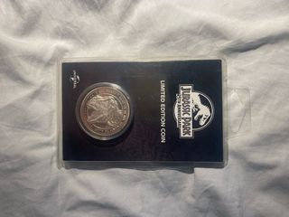 Edición limitada de moneda conmemorativa de Jurassic Park. - Diseño plateado. - Presentada en su embalaje original. - Conmemora el 25 aniversario de la película.