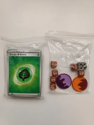 Set de accesorios para juegos de cartas coleccionables. Evoluciones prismáticas. Prismatic evolutions. - Energías Básicas. - Varios dados. - Dos fichas/monedas de juego.