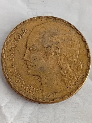 Moneda de 5 céntimos de la República Española con fecha de 1937. - Diseño de la época. - Ideal para coleccionistas.