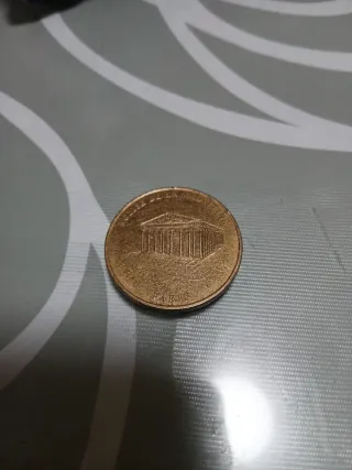 Moneda conmemorativa con diseño del Panteón de París. - Inscripción PARIS en la parte inferior. - Diseño arquitectónico detallado.
