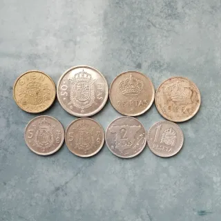 Se venden 6 monedas de 50 pesetas de España.Esta moneda es una pieza de colección de 50 pesetas españolas de 1980, acuñada durante el reinado de Juan Carlos I. Anverso: Muestra el perfil del Rey Juan Carlos I mirando hacia la derecha. Inscripción: Se lee "JUAN CARLOS I REY DE ESPAÑA" y el año "1980". Diseño: A menudo, estas monedas presentan estrellas con números ocultos que indican el año real de acuñación, siendo una característica clave para los coleccionistas. Valor: Su valor numismático depende en gran medida de su estado de conservación y de las estrellas de acuñación.