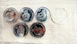 Moneda conmemorativa de Un Bolívar de plata. - Diseño con perfil de Simón Bolívar. - Inscripción BOLIVAR LIBERTADOR en el borde. - Grabado BARRE en la parte inferior. - Plata de lei con una pureza de 835. - Peso: 5 gramos - Diseño: presenta el escudo de armas de la republica de venezuela en el reverso. - Acuñada por la fabrica de la moneda britanica. - precio por unidad, preguntar disponibilidad. -647521124