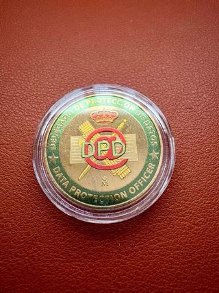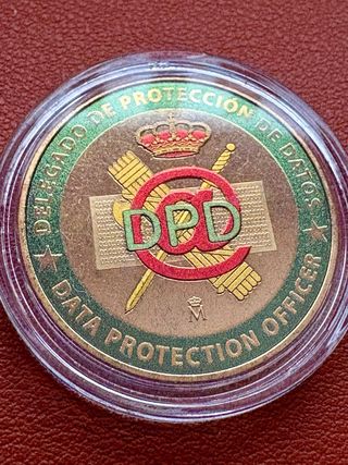 Moneda conmemorativa del Delegado de Protección de Datos (DPD) de la Guardia Civil. Pieza muy rara. Acuñada por la FNMT. Tirada muy baja . Muy difícil de conseguir. - Diseño en relieve. - Inscripción DELGADO DE PROTECCIÓN DE DATOS y DATA PROTECTION OFFICER. - Detalle de DPD en el centro. Tags Guardia civil guardiacivil monedas coleccionismo militar militaria gar uei geo policia plata tabrica nacional de moneda y timbre cuerpo policial DPD