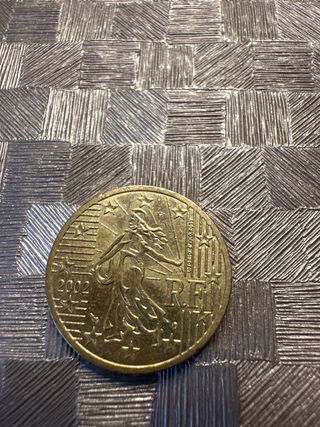Moneda de 50 céntimos de euro, conmemorativa de la República Francesa (RF). - Año de acuñación: 2002. - Diseño de la Libertad. - Borde con estrellas.