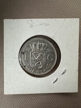 Moneda de 1 G de los Países Bajos del año 1956. - Diseño con corona y león. - Inscripción Nederland en el borde.
