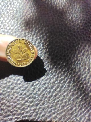 Denominación Moneda 1 PFENNIG 1949 Alemania. Ceca G Composición Acero chapado en bronce. Borde liso Peso (gr)2 Diámetro (mm)16.5 Espesor (mm)1.38