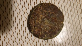 Moneda antigua con un diseño detallado - Diseño de corona. - Inscripción parcial visible.