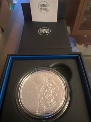 Moneda conmemorativa de plata de Francia, edición especial por los 100 años de la desaparición de Gustave Eiffel. - Diámetro: 37 mm - Acabado: Silver Proof (BE) - Material: Plata