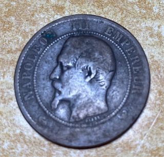 Moneda conmemorativa francesa. - Diseño de Napoleón III. - Inscripción NAPOLEON III EMPEREUR.