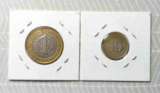 Lote 2 Monedas Turquía 1 Lira y 10 Kuruş