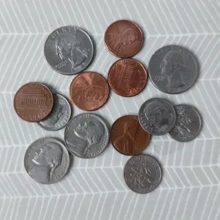 Conjunto de monedas de diferentes denominaciones y años de los Estados Unidos de América.
