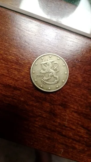 Moneda de 10 céntimos de Finlandia del año 2000. Presenta el león rampante, símbolo nacional de Finlandia, rodeado por estrellas. - Año: 2000 - Denominación: 10 céntimos - País: Finlandia Cualquier cosa escríbeme