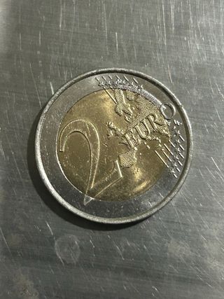 Moneda de 2 euros conmemorativa de Grecia. Moneda del 2002 con un fallo que hace que se eleve el precio, perfecta para coleccionistas. Presenta un diseño detallado. - Canto con inscripción. - Diseño de la cara nacional de Grecia.