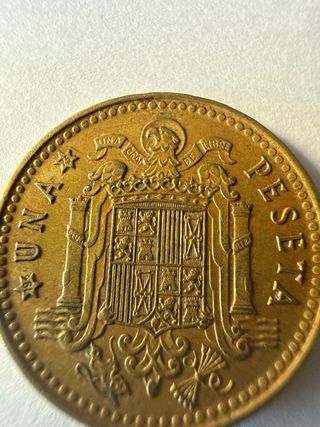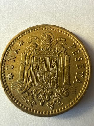 Moneda original de España, valor facial 1 peseta, con fecha base 1966 y estrellas estrellas 19-74 (acuñación real 1974). Anverso con retrato de Francisco Franco y reverso con escudo nacional.