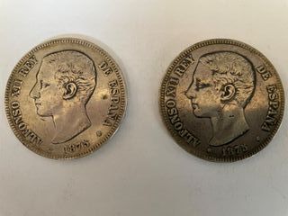 2 Monedas Plata Alfonso XII 5 Pesetas 1878