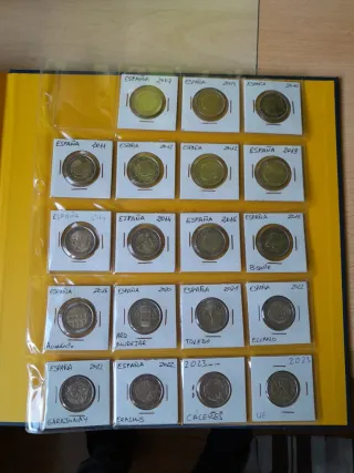 Colección de monedas conmemorativas de dos euros de España. - Incluye monedas de varios años, desde 2007 hasta 2023. - Diseños variados conmemorando diferentes eventos y lugares de España. Cada moneda por 3,5 euros. Se venden Sueltas