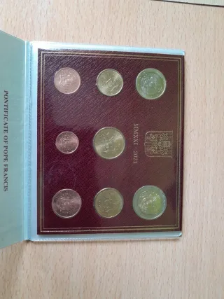 Conjunto de monedas del Vaticano del año 2015, conmemorativo del Pontificado de Papa Francisco. Incluye ocho monedas. - Año: 2015 - Emisor: Estado de la Ciudad del Vaticano - Escultores: Patrizio Daniele, Orietta Rossi, Gabriella Titotto - Grabadores: M. C. Colaneri, L. De Simoni, E. L. Frapiccini - Casa de la moneda: IPZS - Italia