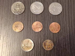 Lote compuesto por 8 Monedas Estadounidenses. 3 Monedas de cuarto (1/4) de Dollar / Dolar de los Estados Unidos De América (USA). 1 del estado de Georgia de 1999, otra del estado de Tenesse de 2014 y la última de con aguila en el reverso de 1981. + 1 Moneda de 5 centavos de 1999 + 3 Monedas de 1 centavos de 2014 - 2005 - 1980 + 1 Moneda One Dime de 2008 Circuladas y con signos del uso. Observar detenidamente las fotografías, son parte de la descripción.
