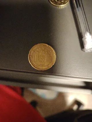 Moneda de 20 céntimos de euro, acuñada en España en el año 2007. - Diseño con los pilares del Pórtico de la Gloria. - Canto con ranura.