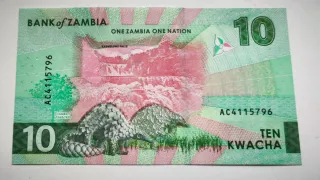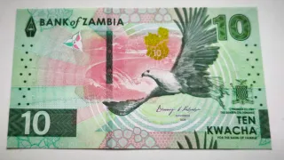 Billete de 10 Kwacha de Zambia del año 2024. Presenta un diseño detallado con un águila en vuelo. Sin circular, plancha. - Banco de Zambia. - Diseño conmemorativo de 2024. - Denominación: 10 Kwacha.