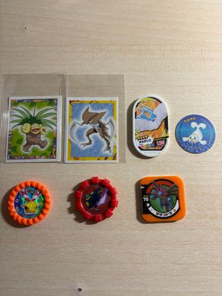 Pegatinas de Exeggutor y Kabutops 1999. Tazo Chingling. Tazo Sviper 2007 Chetos. Tazo Seel 2001 de Nintendo. Tazo Altaria Mazestar Tazo Hydreigon año 2012.