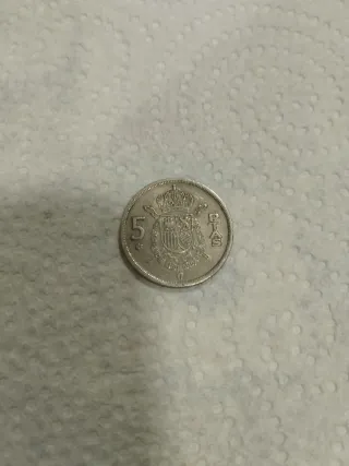 Moneda conmemorativa de España del año 1975. - Anverso: Retrato de Juan Carlos I. - Leyenda: JUAN CARLOS I REY DE ESPAÑA. - Reverso: Escudo de España y año 1975. Número de estrellas 79