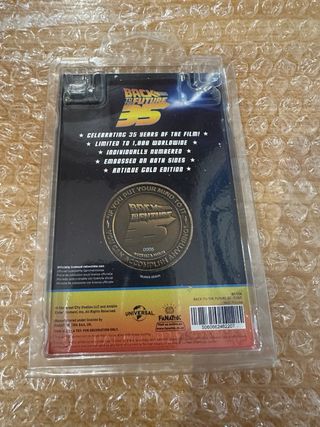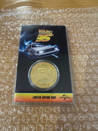 Conmemora el 35 aniversario de Regreso al Futuro con esta moneda de edición limitada a 1.000 unidades en todo el mundo 🌎 - Diseño inspirado en la película. - Acabado dorado. - Sello de Universal. Con el emblema del Reloj del Ayuntamiento. Artículo de colección.