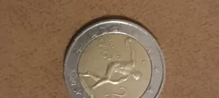 Moneda conmemorativa de 2 euros de Atenas 2004. - Diseño del lanzador de disco. - Símbolo de los Juegos Olímpicos. - Año de emisión: 2004. - Denominación: 2 EURO.