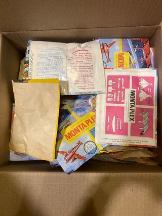 Colección de sobres de la marca Montaplex. - Diseños variados con temática de aviones, vehículos y personajes históricos. - Ideal para coleccionistas de modelismo y artículos retro.