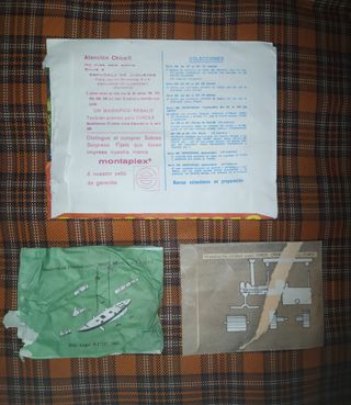 Marca Montaplex. Made in Spain. Original de los años 70. Contiene soldaditos de plástico de escala 1:72 (miden entre 2 y 2,5 cm. aprox.) y algún tipo de vehículo militar. El sobre se conserva en muy buen estado. Siempre te puedes encontrar alguna arruga o pequeña raja producida por el propio contenido del sobre. Los sobres miden 17 x 13 cm. aprox.