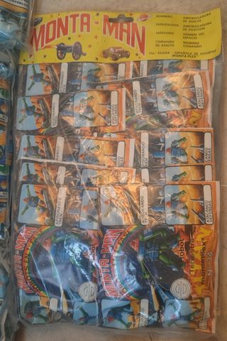 Soldados en plastico. Montaplex. Años 70 Los sobres sorpresa Montaplex eran sobres sorpresa en cuyo interior habían figuritas de plástico. Generalmente estas figuras eran de carácter militar. Si bien en su mayoría estas figuras estan compuestas por soldaditos.La lista de figuritas que incluían es larga: Soldados, jinetes.Por último decir que Los pequeños se entretenían creando y organizando ejércitos y simulando batallas