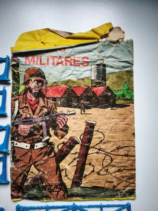 Lote de figuras de soldados de plástico de la marca Sobreplast, modelo tipo Montaplex. Emboscada. El sobre esta desgastado